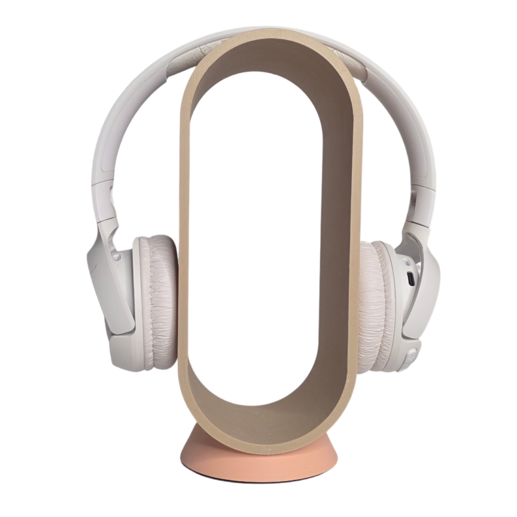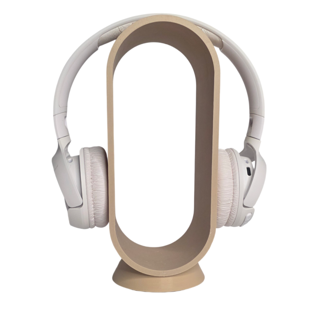 Uniwersalny stojak na słuchawki w kolorze beżowym.